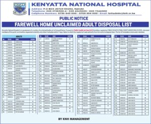 KNH has published lists on its website under the section Disposal of Unclaimed Bodies.